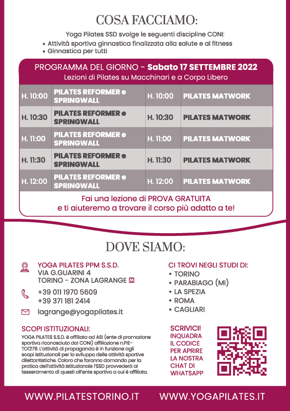 Siete tutti invitati al nuovo 𝗢𝗣𝗘𝗡 𝗗𝗔𝗬 che si terrà presso lo Studio Yoga Pilates PPM Lagrangeil prossimo Sabato 17 Settembre!