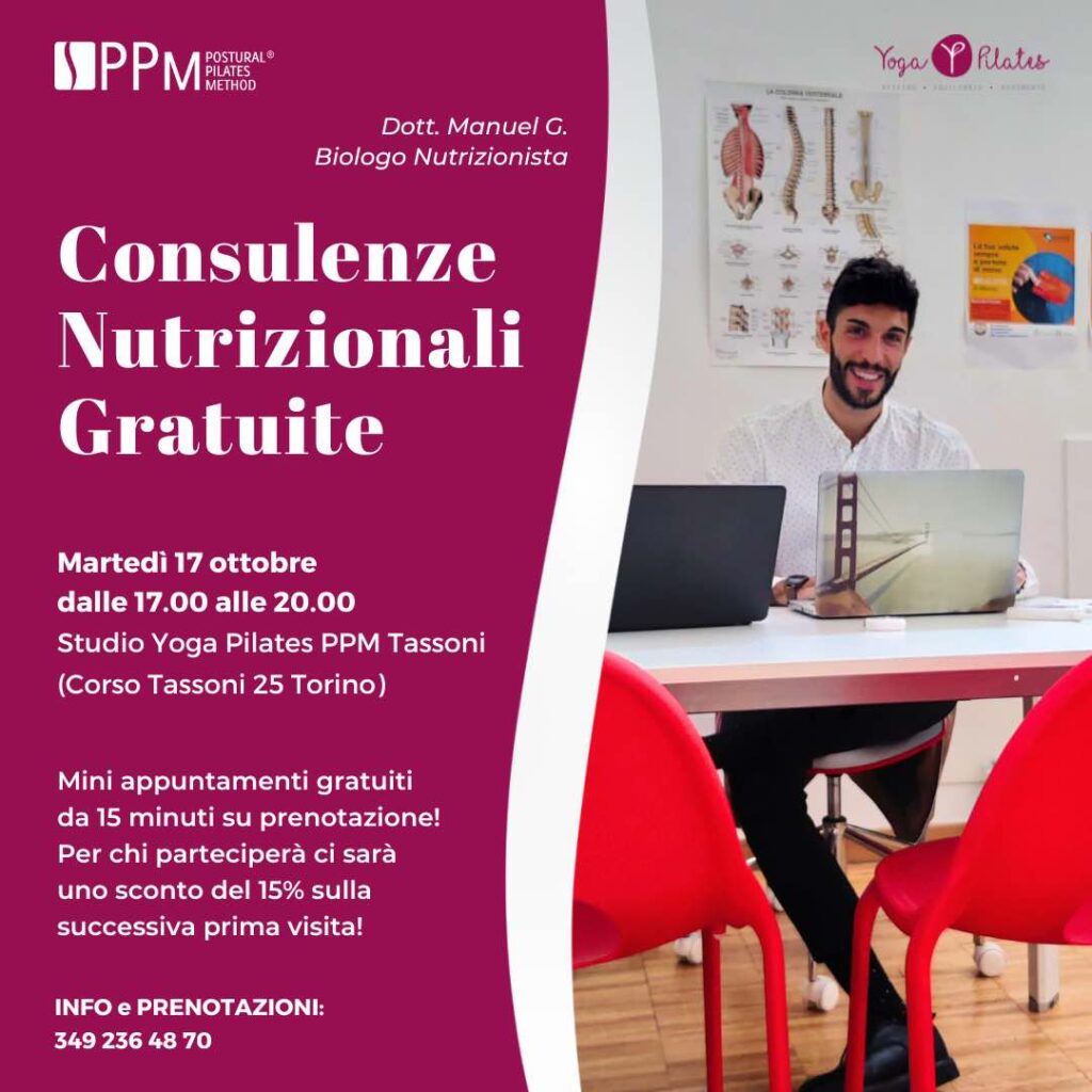 Martedì 17 ottobre presso lo Studio Yoga Pilates PPM Tassoni, avrai l’opportunità di prenotare una consulenza nutrizionale GRATUITA da 15 minuti!